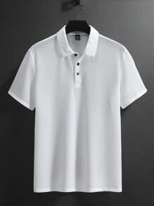 Manfinity Homme Men Fashionable Business Casual Work Summer Comfortable Collar Polo Shirt, All-Match Style, For Husband