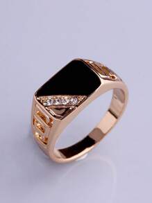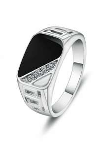 1 Pc Classic Square Black Gemstone Fashion Men's CZ Ring